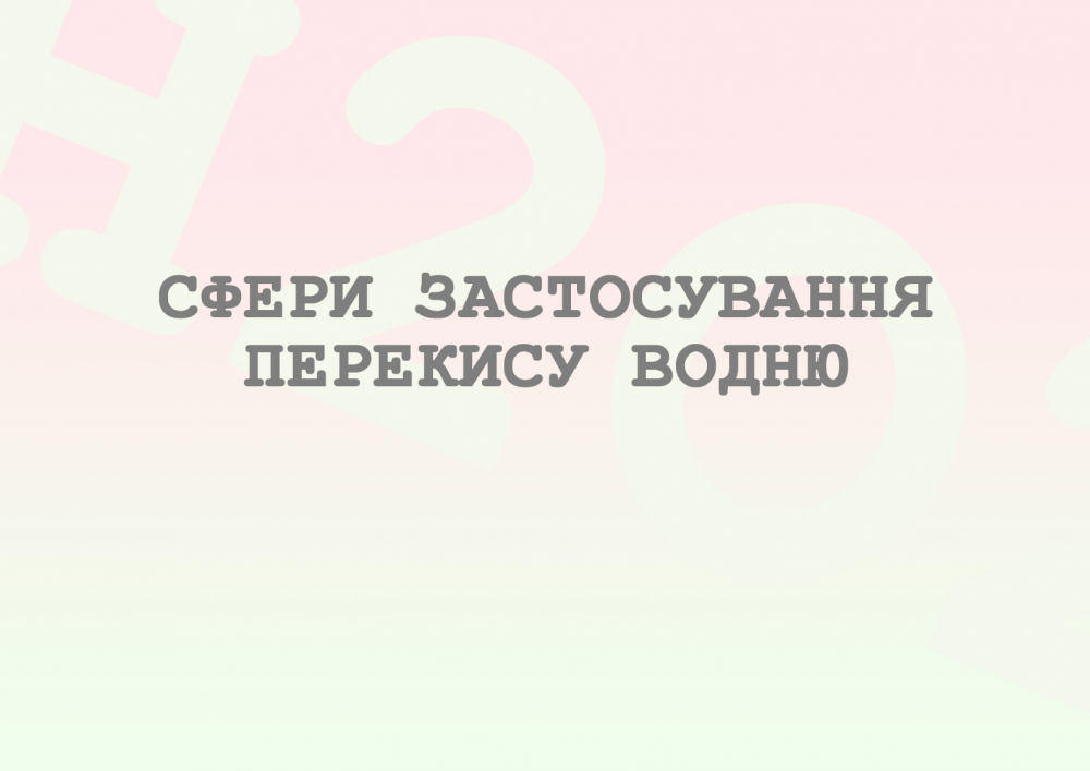 В зависимости от своей концентрации, перекись может использоваться и в быту. Владельцы искусственных водоемов предпочитают использовать именно пергидроль для бассейна, а не более агрессивные, опасные и дорогостоящие хлорсодержащие препараты. Очистка бассейна пероксидом водорода основывается на окислительных реакциях, возникающих при контакте с водой. Активный кислород не только дезинфицирует зацветшую воду, но и осветляет ее, делает воду идеально прозрачной и чистой, нейтрализует пот и мочевину.