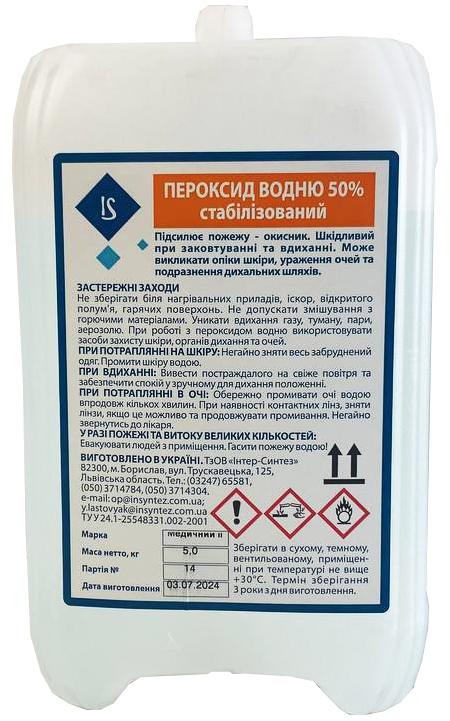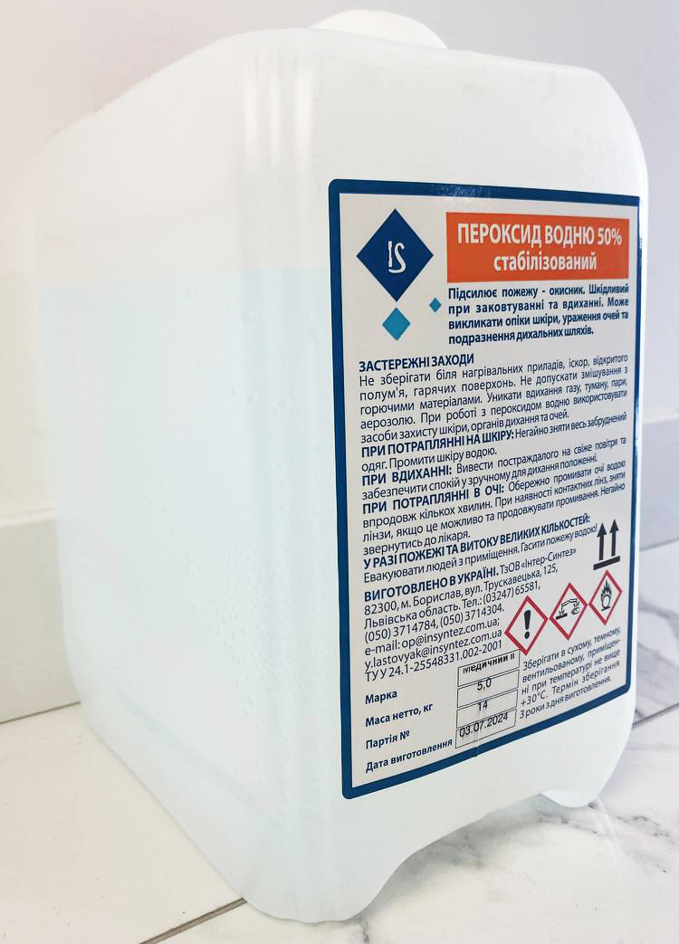 Пергидроль 50% (5 кг) (перекись водорода, пероксид водорода) с клапаном