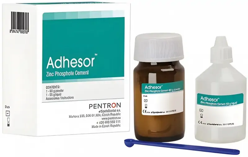Двухкомпонентный цинкфосфатный цемент в виде порошка и жидкости.