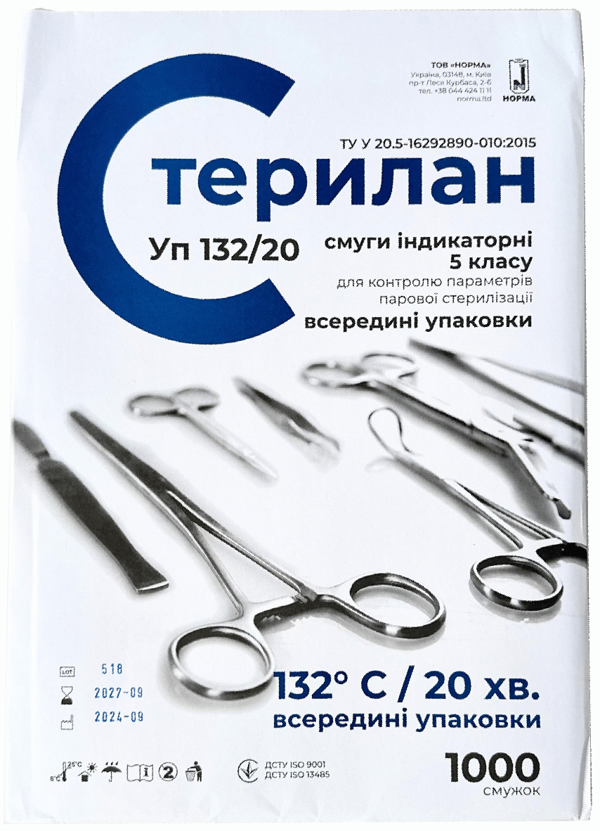 Индикаторы паровой стерилизации Норма Стерилан Уп 132/20 внутренние (5 класс, 1000 шт)