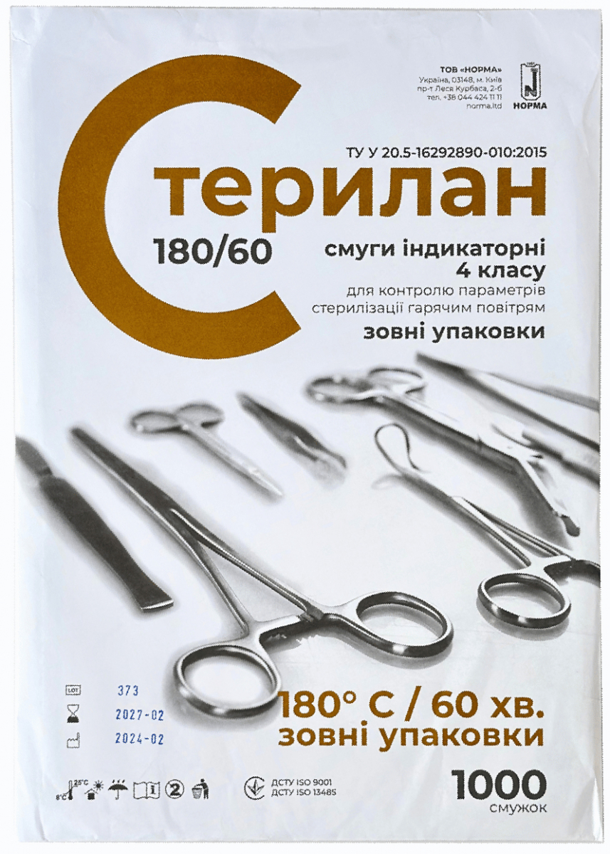 Индикаторы стерилизации горячим воздухом Норма Стерилан 180/60 (4 класс, 1000 шт)