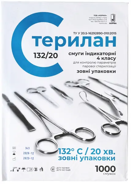 Индикаторы паровой стерилизации Норма Стерилан 132/20 (4 класс, 1000 шт)