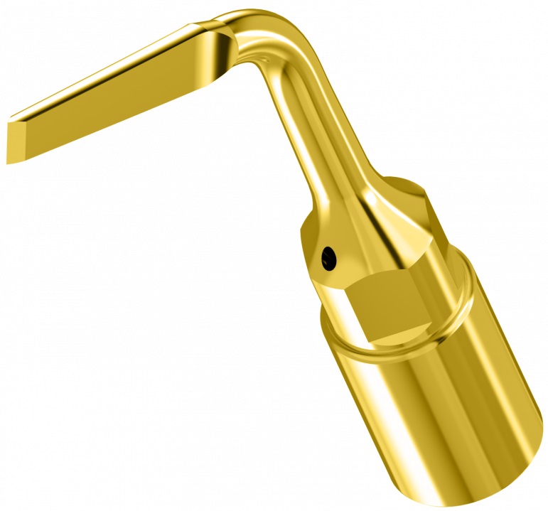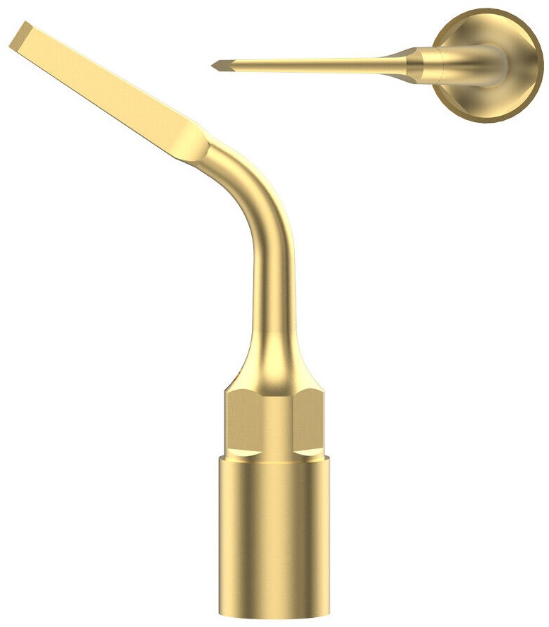Хирургический инструмент выполнен из нержавеющей стали с гипоаллергенным покрытием нитрида титана. Данный материал обеспечивает долговечность эксплуатации, прочность, устойчивость к коррозии и перепадам температур. При монтаже на шланг скалера используется резьбовой способ подключения, безопасный и надежный.