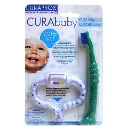 Для стимулирования прорезывания зубов поможет CURAbaby. Это кольцо с разными типами поверхности и погремушкой, это помогает сделать уход за зубами веселым и приятным. Имея более игривый подход к гигиене полости рта в молодом возрасте гарантирует, что молочные зубы и в дальнейшем постоянные зубы, будут прорезываться вовремя и здоровыми. Молочные зубы являются стартом для последующих постоянных зубов, а также они поддерживают развитие речи и нормальному и здоровому росту челюсти и лица.