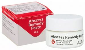 Abscess remedy (Абсцесс ремеди) - бактерицидная рентгенконтрастная паста для временного и постоянного пломбирования инфицированных корневых каналов. Производство PD (ПД, Швейцария).