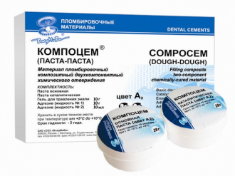 Компоцем (паста-паста) - представляет собой композит на основе метакрилатных олигомеров (Бис-ГМА, ТГМ) и модифицированного тонкодисперсного неорганического наполнителя (до 80% массы).