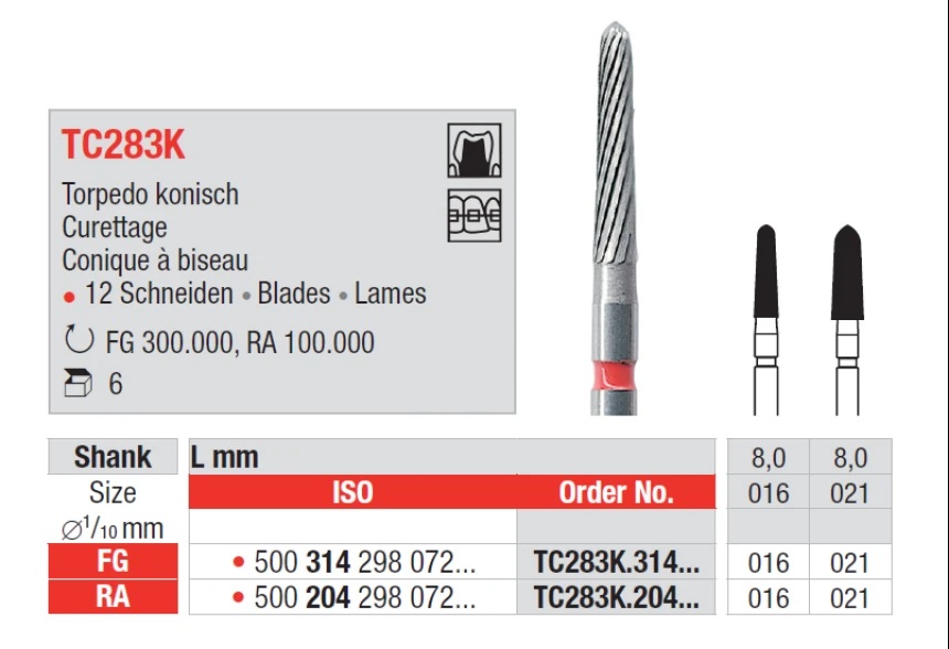 Технические характеристики Бор финишный торпедообразный Edenta TC283К.314.016