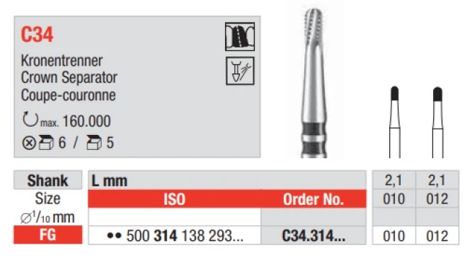 Бор ТВС Edenta для разрезания коронок С34.314.010