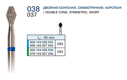 Российская компания ВладМиВа производит высококачественные стоматологические товары, соответствующие европейским нормам и имеющие необходимые сертификаты качества. Алмазный бор VladMiva 104.038.534.033 (двойной конус зел. пр.) применяется в терапевтической стоматологии вместе с прямым наконечником.