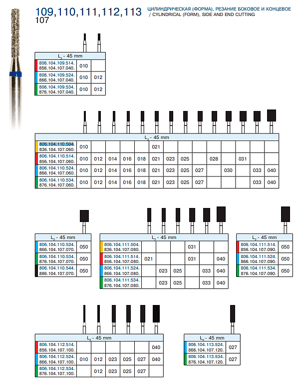 Технические характеристики Бор VladMiva 806.104.110.504 (цилиндрический, желтый - экстрамелкий, 10 шт)