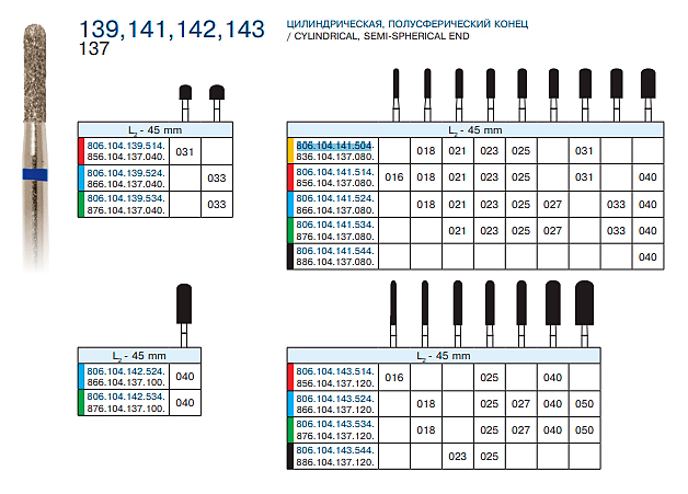 Технические характеристики Бор VladMiva 806.104.141.504 (цилиндрический, полусферический, желтый - экстрамелкий, 10 шт)