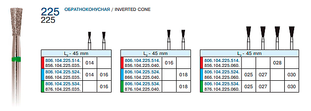 Технические характеристики Бор VladMiva 806.104.225.514 (обратноконусный, красный - мелкий, 10 шт)