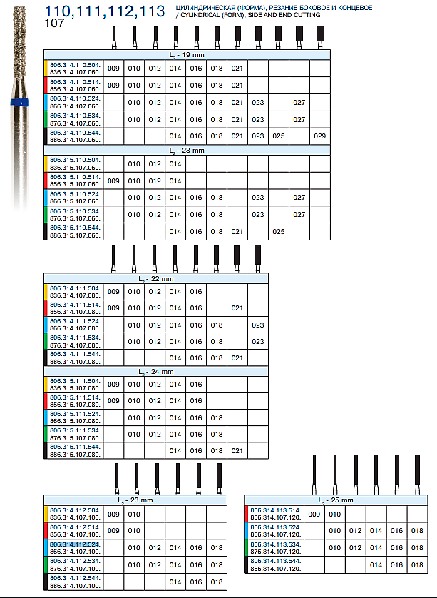 Технические характеристики Бор VladMiva 806.314.110.504 (цилиндрический, желтый - экстрамелкий, 10 шт)