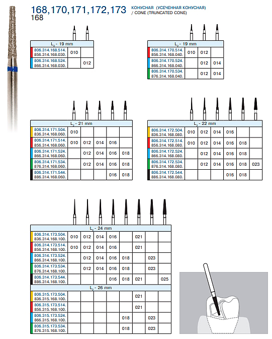 Технические характеристики Бор VladMiva 806.314.171.524 (конусный, усеченный, синий - средний, 10 шт)