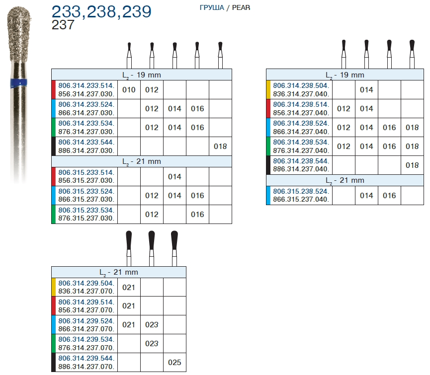 Технические характеристики Бор VladMiva 806.314.233.514 (грушевидный, красный - мелкий, 10 шт)