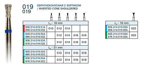 Технические характеристики Бор VladMiva 806.315.019.534 (обратноконусный с буртиком, зеленый - грубый, 10 шт)
