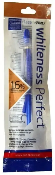 Гель FGM Whiteness Perfect Вайтнес Перфект (шприц весом 3 г) предназначен для безопасного отбеливания здоровых зубов химическим способом. Процедура проводится в домашних условиях, заявленный курс осветления зубной эмали длится от 10 до 14 дней (в зависимости от состояния зубов, индивидуальных особенностей, стремления получить определенный тон).