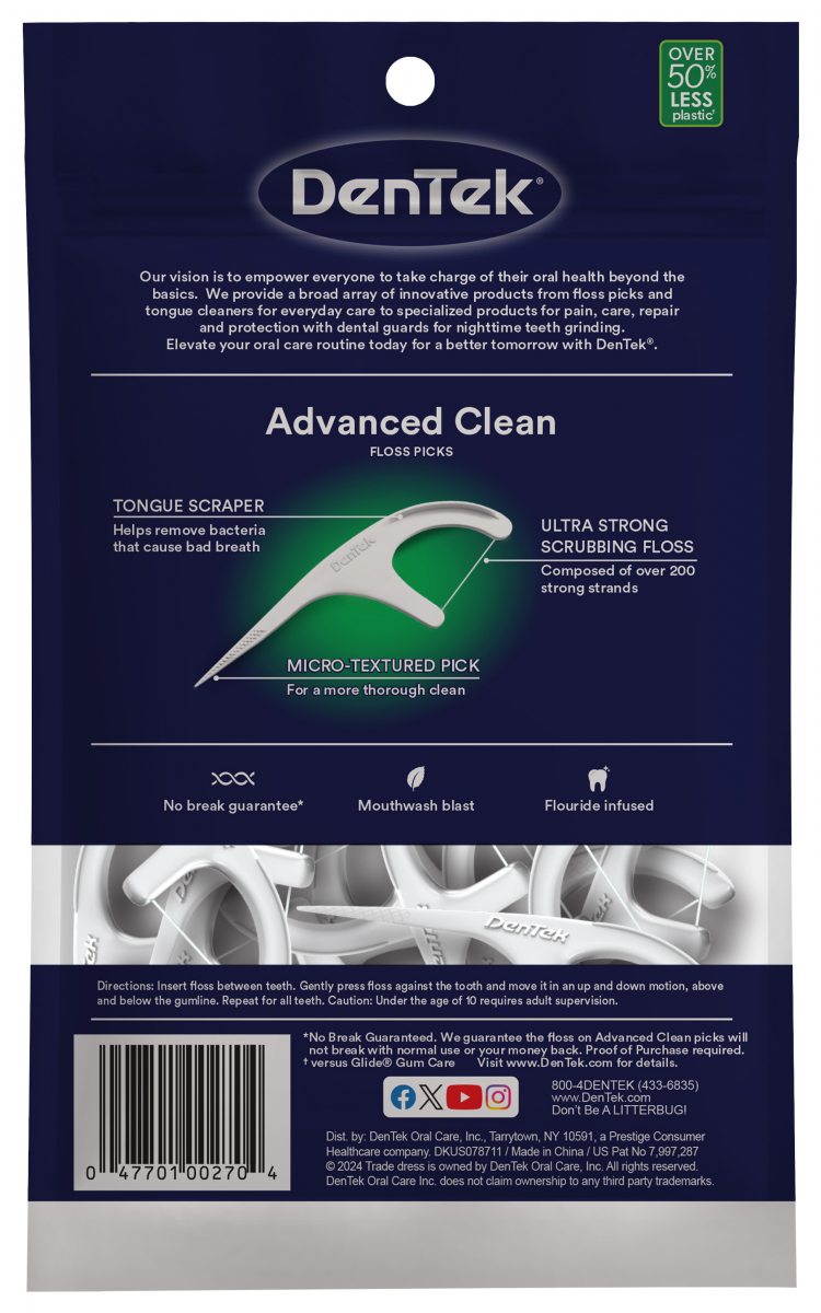 Технические характеристики Флосс-зубочистки DenTek Тройное очищение