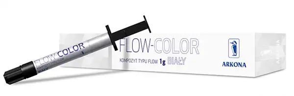 ArkonaФотополимерный материал Flow color (шприц весом 1 г) используется в терапевтической стоматологии, особенно востребован на детском приеме. Композит обеспечивает быструю и надёжную герметизацию фиссур и ямок, пломбирование всех типов полостей (от 1 до 5) на постоянных и молочных зубах передней группы. Выделяет фтор, защищает зубы от повторного инфицирования кариесом. Процедура отверждения проходит световым способом под действием ультрафиолетового излучения, испускаемого галогеновыми или фотополимерных и лампами.