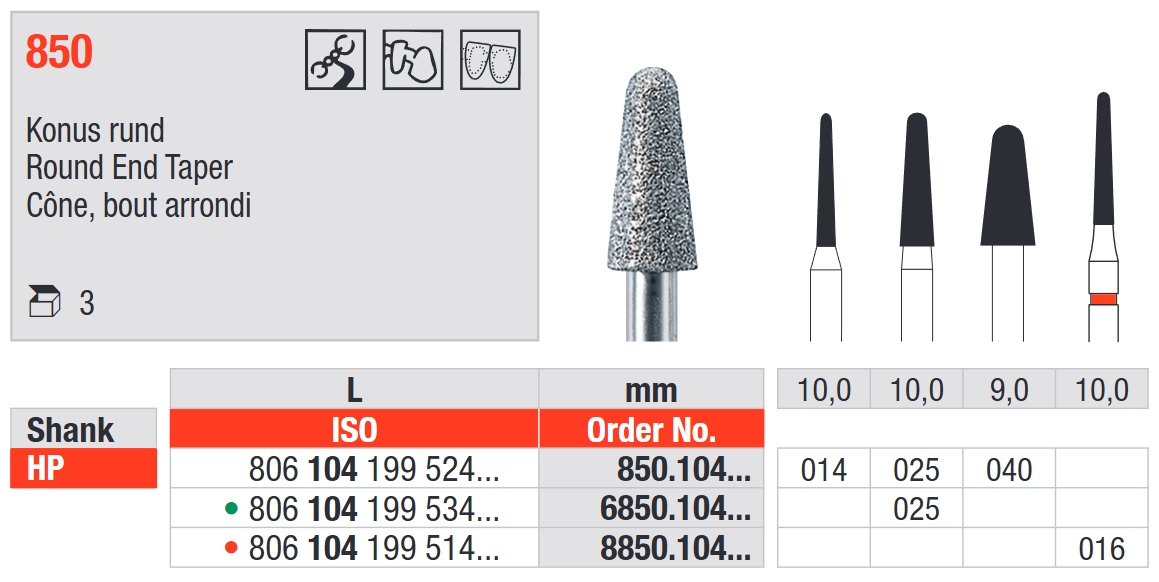 - Цифровой код режущей части от производителя 850