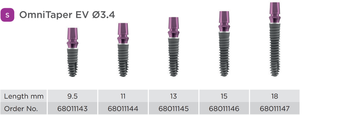 Технические характеристики Имплантат Dentsply OmniTaper EV, S, d – 3.4