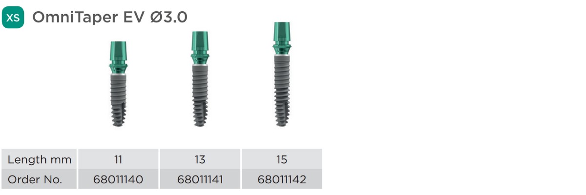Технические характеристики Имплантат Dentsply OmniTaper EV, XS, d – 3.0