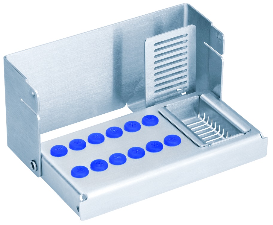 Подставка для инструментов из нержавеющей стали с 12 держателями для инструментов FG и угловых наконечников, а также корзиной для инструментов