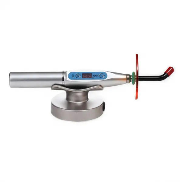 Прочный корпус изделия устойчив к механическим воздействиям, с легкостью очищается, имеет эргономичную конструкцию. Световод из оптического волокна имеет изогнутую форму, что обеспечивает идеальный доступ ко всем сторонам зуба вне зависимости от его расположения. Автоклавируется световод при температуре 135° C, длительность обработки - 15 минут. Встроенный синий светодиод испускает волны синего спектра длительностью 420-480 нм. Мощность светового потока составляет 1000-2000 мВт/см2. Установлен таймер, позволяющий контролировать длительность процесса полимеризации от 5 секунд до 40 секунд. Управление фотополимеризатором проводится при помощи кнопок. Мини-дисплей позволяет специалисту визуально контролировать текущие процессы, устанавливать необходимый режим работы.