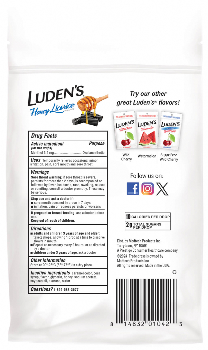 Отзывы Леденцы с ментолом Luden’s, анестезирующие для горла и полости рта, мед и лакрица, 30 шт