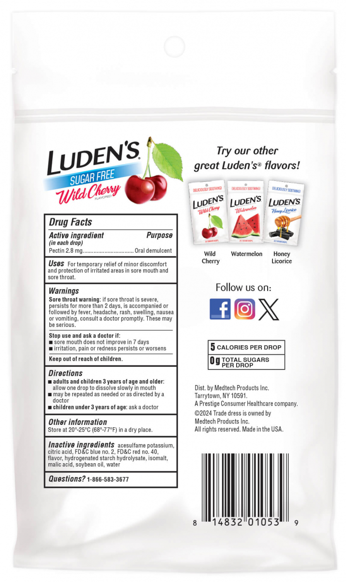 Отзывы Леденцы с пектином Luden’s, успокаивающие для горла и полости рта, дикая вишня, без сахара, 25 шт