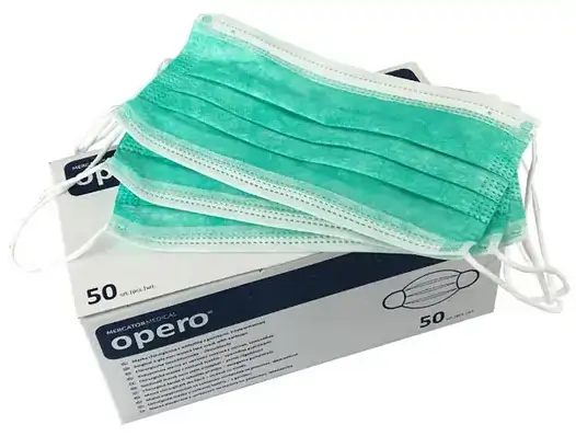Маска не стерильная, нетканая, 3-х слойная Mercator Medical, упаковывается партиями по 50 шт. В качестве материала исполнения выбран нетканый спанбонд. Изделие входит во II тип  средств индивидуальной защиты, обладают отличной теплопроводностью и воздухопроводностью. Обеспечивают надёжный барьер для всевозможных патогенных микроорганизмов и частичек инфицированной аспирационной пыли.