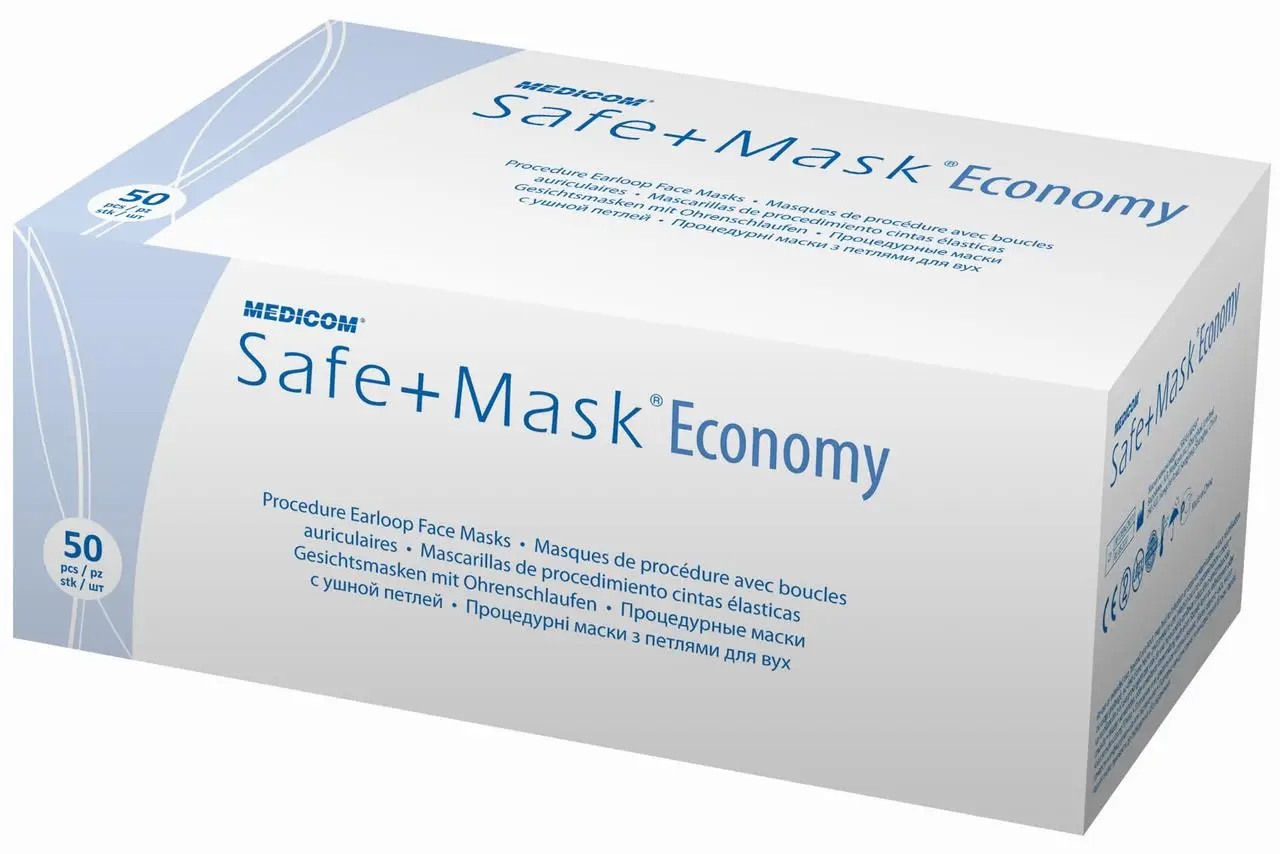 SAFE+MASK Economy, 50 шт (Medicom) Маски медицинские с петлями для ушей, 17,5х9 см