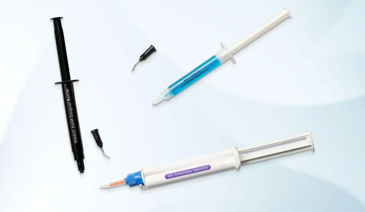 Улучшенная формула нового геля позволила добиться хорошей стабильности результата у пациентов, лучшего отбеливающего эффекта. Одного набора достаточно для проведения отбеливающих процедур у 5 пациентов, при этом количество нанесений увеличено до 20. Уникальная формула геля позволяет получить максимальный отбеливающий эффект, при этом почти не вызывает чувствительности (всего 5% пациентов из 100, склонных к аллергическим реакциям на пероксид водорода, жалуются на легкую чувствительность, небольшое раздражение и незначительный дискомфорт во время процедуры).