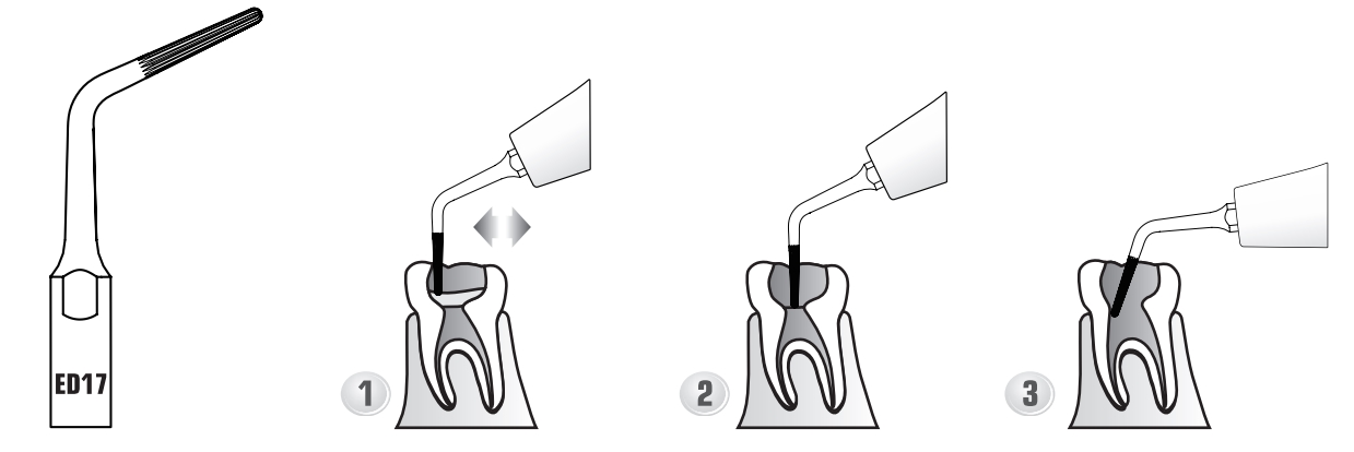 Функция: используется для обнаружения корневых каналов, очистки пульпарной камеры и открытия устьев. Особенности: наконечник имеет 15 микрошайб и обладает хорошей режущей способностью. Возвратно-поступательное движение наконечника обеспечивает более эффективную работу.