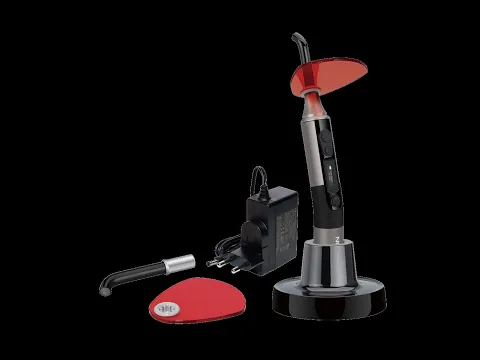 Max DentalЮжнокорейская компания Max Dental выпустила беспроводную фотополимерной лампу Noblesse E мощностью 240 В. Электроприбор принадлежит к 2 классу (type B). Облегченный корпус из алюминия повлиял на общий вес изделия - всего 148 г. Благодаря этому у специалиста не возникает синдрома усталости рук при работе с лампой. Наличие OLED-дисплея обеспечило полный контроль пользователя над текущими процессами (выбор режима, контроль мощности излучения, установка таймера и т. д.).
