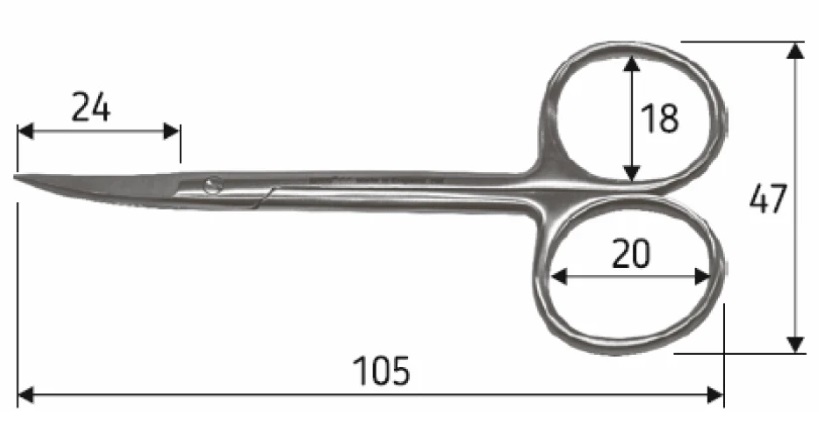 Технические характеристики Ножницы изогнутые Nova N0907, Iris 10,5 см, острый/острый