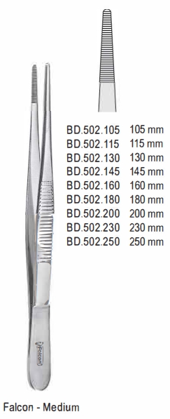Пинцет 130 мм, Falcon BD.502.130, Medium, анатомический