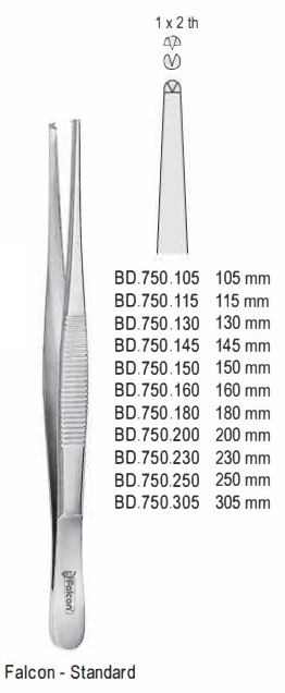 Описание BD.750.150 (Falcon) Пинцет хирургический, 150 мм