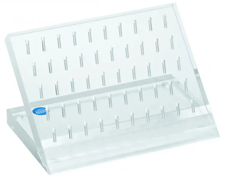 Акриловый органайзер для инструментов, изготовленный из плексигласа, с 50 отверстиями. Рекомендуется для хранения инструментов с наконечниками (HP) с максимальным диаметром 2,35 мм.