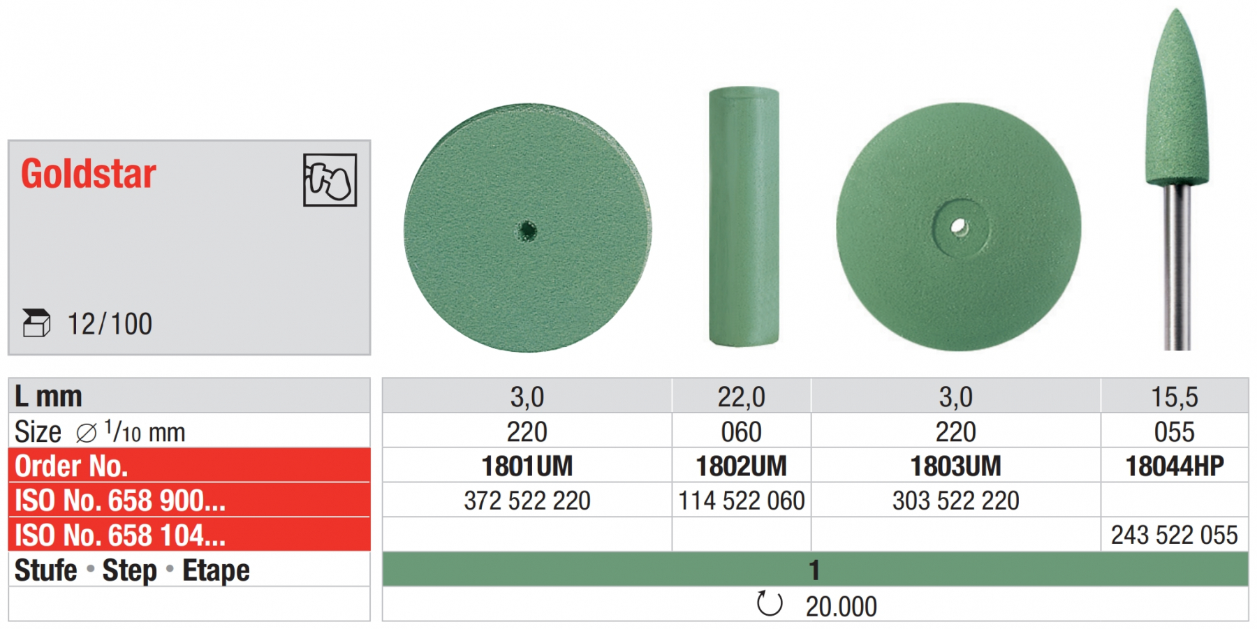 Технические характеристики Полировочная головка Edenta Goldstar 18044HP (для прямого наконечника)