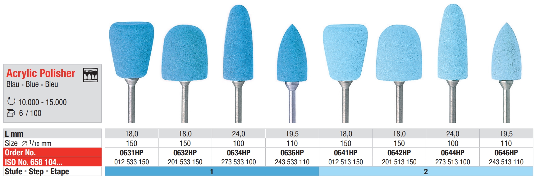 Технические характеристики Полировочные головки Edenta 0641HP (для акрилов и пластмасс)