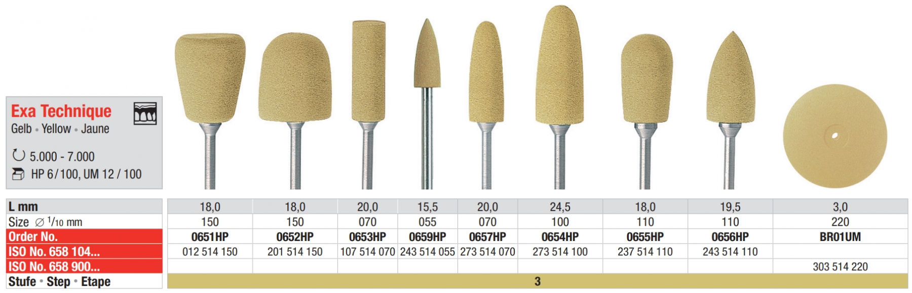 Технические характеристики Полировочные головки Edenta 0657HP (для акриловых протезов)