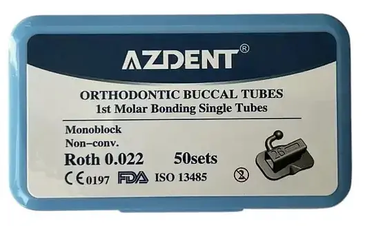 Щечные трубки на 1й неконвертируемый моляр Azdent, Roth 022, с лазерной маркировкой, 200 шт