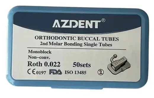 Щечные трубки на 2й моляр неконвертируемые Azdent, Roth 022, с лазерной маркировкой, 200 шт