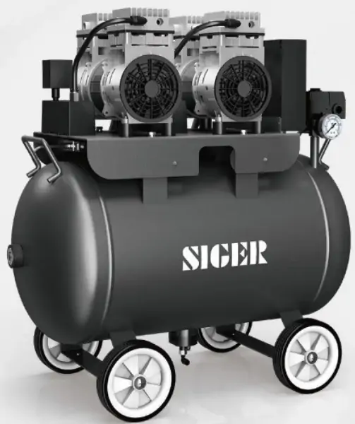 SigerСтоматологический компрессор Siger SA-150/160 LHV – это надежное решение для обеспечения стабильной подачи сжатого воздуха в стоматологических установках. Модель относится к безмасляному типу, который гарантирует чистый воздух без примесей и делает его оптимальным для использования в клиниках, где важны гигиена и безопасность пациентов.