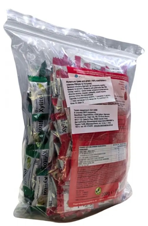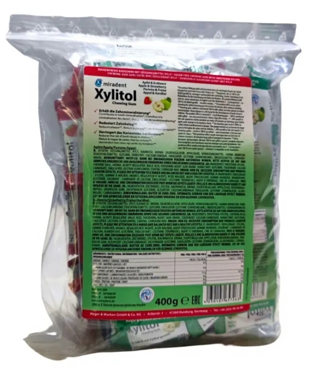 Жевательная резинка Miradent Chewing Gum, ассорти, яблоко+клубника, с ксилитолом против ксеростомии Xylitol (200 шт)