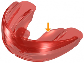 Модель трейнера Т4А червоного кольору виконана з жорсткого силікону, не натирає слизову рота. Основними елементами конструкції капи, що виконують певну лікувальну дію, є: