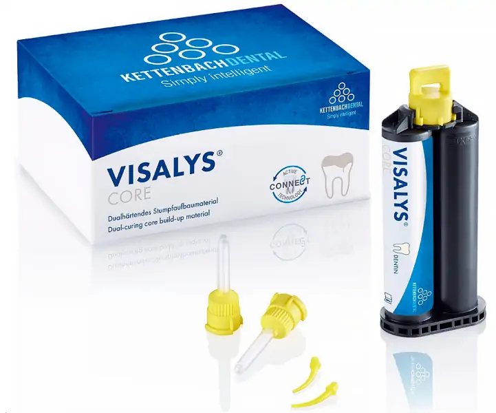 KettenbachVisalys Core композит для відновлення культі зуба і фіксації кореневих штифтів 2шт х 5 мл, змішуючі насадки 20шт, внутрішньооральні насадки 10шт, ендо насадки 10шт.