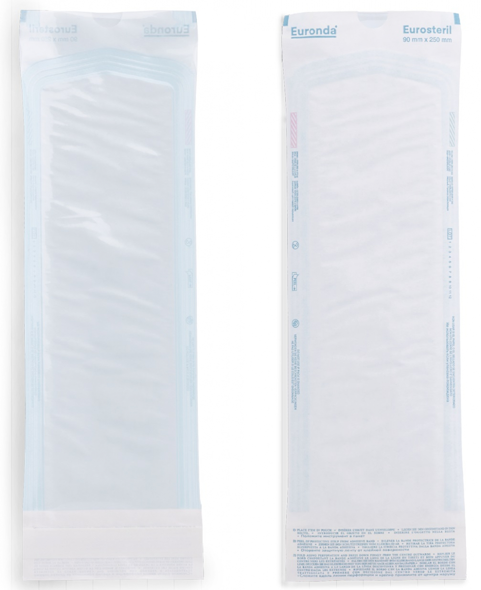 Eurosteril Pouches Самоклеючі пакети для упаковки виробів медичного призначення перед стерилізацією, а також для подальшого збереження стерильності цих виробів до використання за призначенням. Розмір пакета 9х25 см. Упаковка 200 шт.