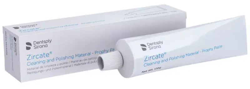 Полірувальна паста Zircate (170 г) від відомої торгової марки Dentsply застосовується в стоматологічній практиці при проведенні професійних профілактично-гігієнічних чисток У складі продукту є силікат цирконію (розміри частинок ретельно підібрані), що забезпечує мінімальний абразивний ефект.